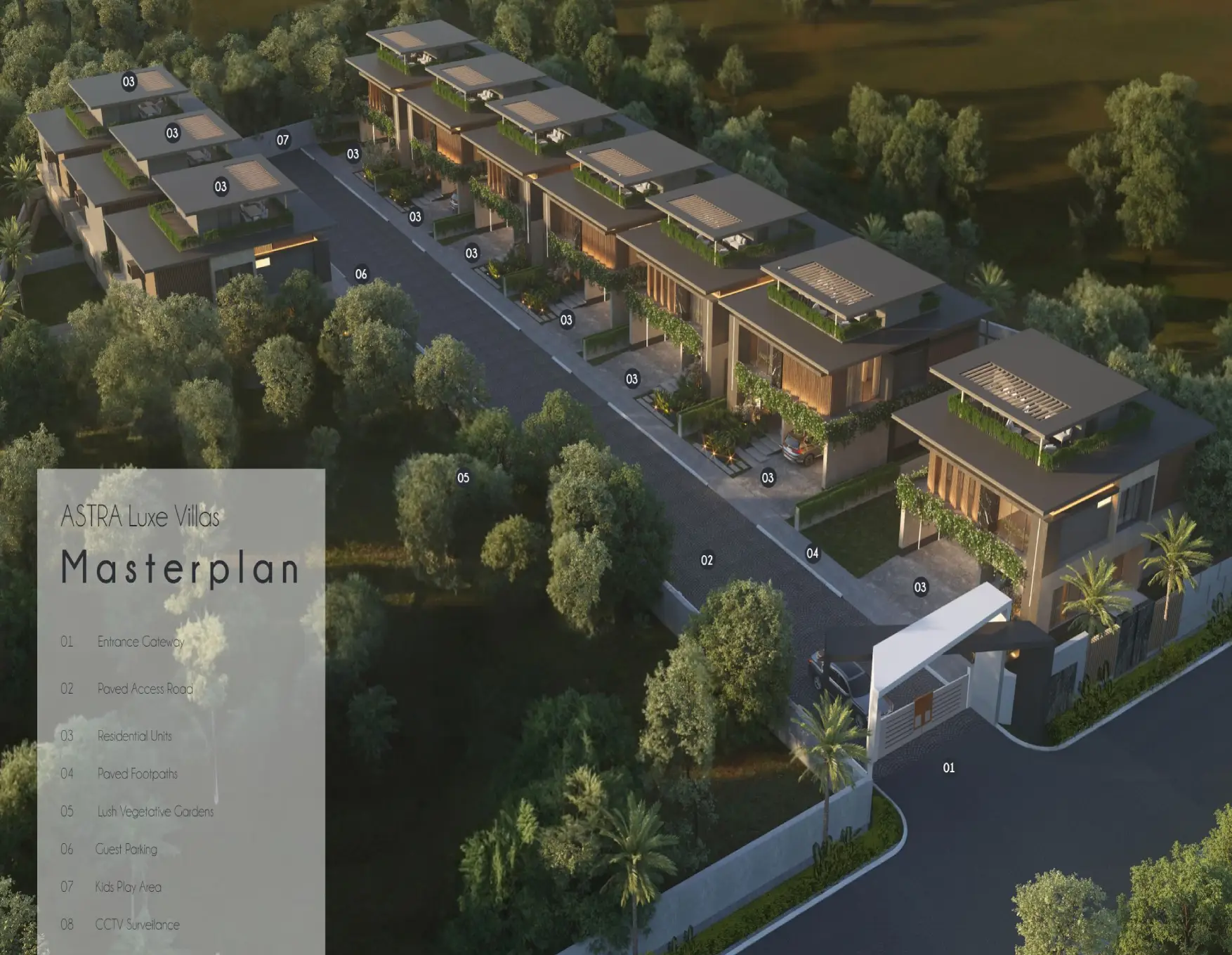 ASTRA LUXE, a gated community villas at the heart of a residential hub and living in one of these villas is a privilege, an opportunity to enjoy excellent location, maximum safety, high standard of life and exquisite style.